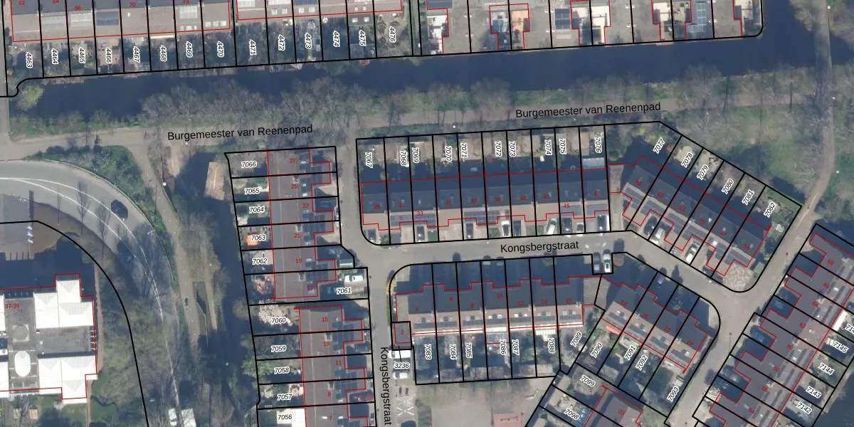 Kongsbergstraat 33 is gelegen op kadastraal perceel GDA01M7069. Deze kadastrale aanduiding is uniek en wordt gebruikt door het Kadaster om eigendomsrechten en andere zakelijke rechten vast te leggen. Het perceel maakt onderdeel uit van de kadastrale gemeente Gouda.