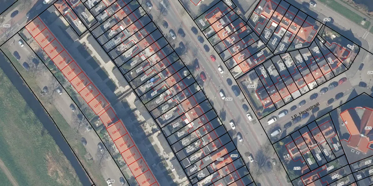 Gebruik de zoekbalk of klik op een perceel voor informatie over de adressen binnen dit perceel.