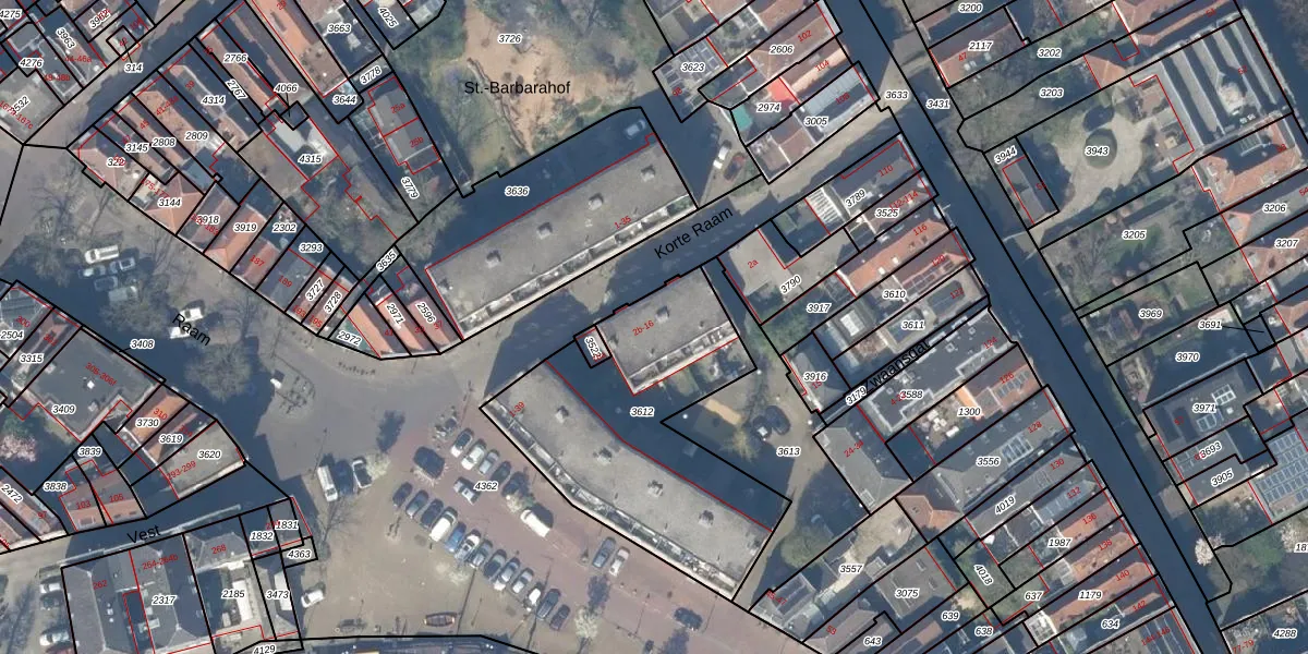 Korte Raam 12 is gelegen op kadastraal perceel GDA01D3612. Deze kadastrale aanduiding is uniek en wordt gebruikt door het Kadaster om eigendomsrechten en andere zakelijke rechten vast te leggen. Het perceel maakt onderdeel uit van de kadastrale gemeente Gouda.
