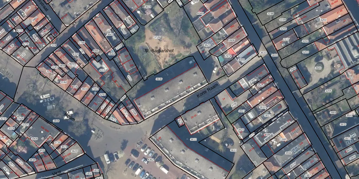 Het perceel waarop Korte Raam 15 staat heeft een oppervlakte van 816 m². Dit is een groot perceel. De perceeloppervlakte wordt geregistreerd door het Kadaster. Gedetailleerde informatie over de maten van dit perceel kunt u vinden in het rapport Kadastrale kaart met maatvoering van Korte Raam 15.