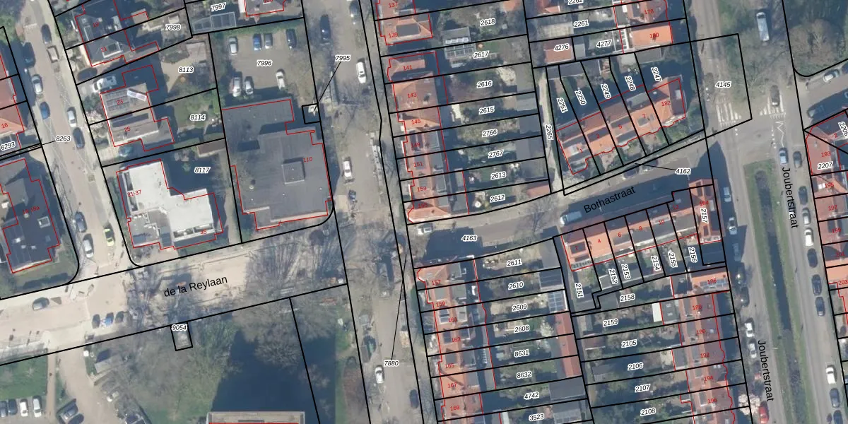 Krugerlaan 155 is gelegen op kadastraal perceel GDA01K2612. Deze kadastrale aanduiding is uniek en wordt gebruikt door het Kadaster om eigendomsrechten en andere zakelijke rechten vast te leggen. Het perceel maakt onderdeel uit van de kadastrale gemeente Gouda.
