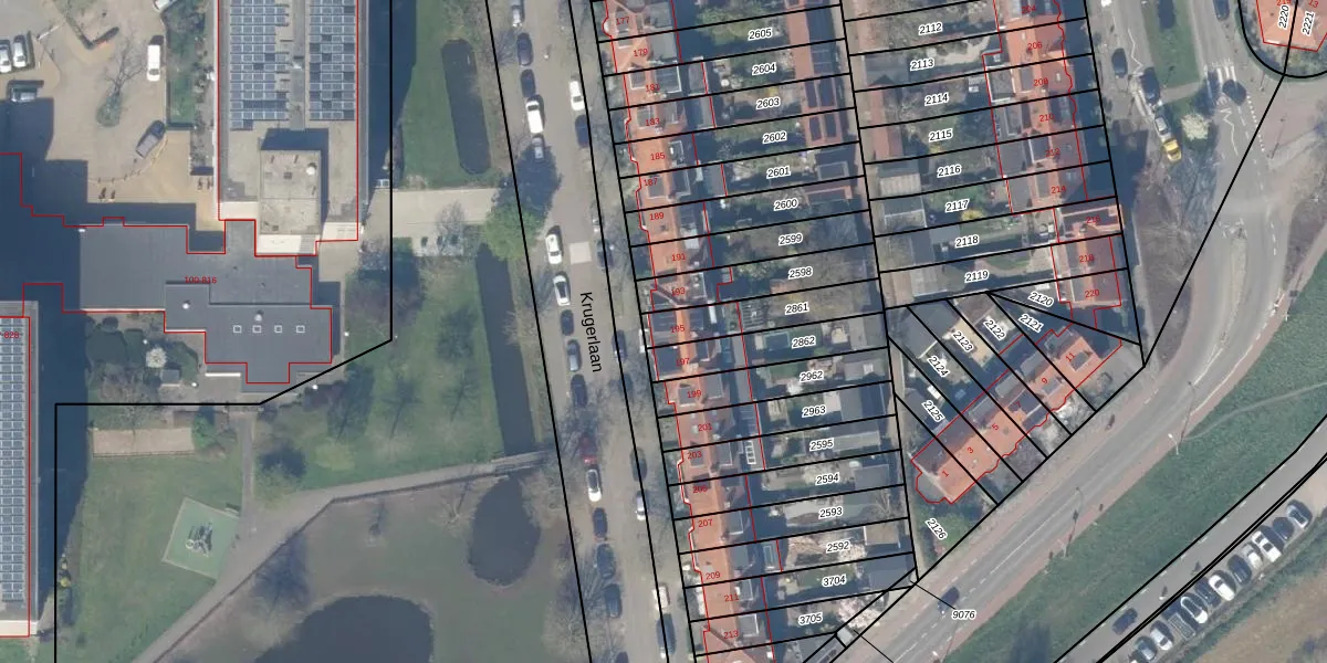 Krugerlaan 195 is gelegen op kadastraal perceel GDA01K2861. Deze kadastrale aanduiding is uniek en wordt gebruikt door het Kadaster om eigendomsrechten en andere zakelijke rechten vast te leggen. Het perceel maakt onderdeel uit van de kadastrale gemeente Gouda.