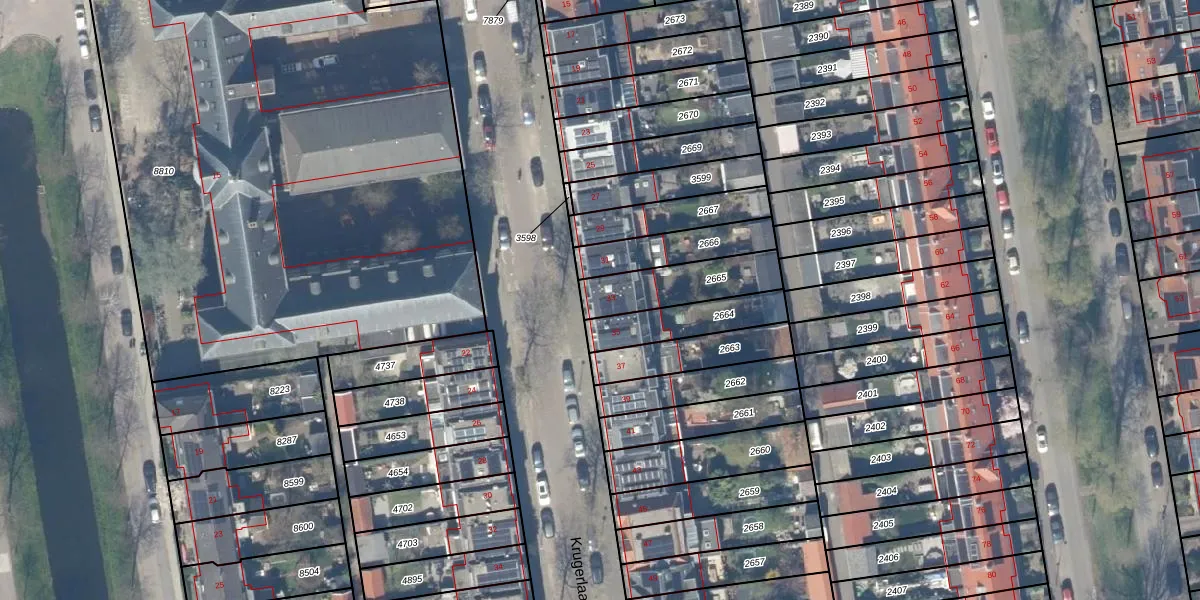 Krugerlaan 33 is gelegen op kadastraal perceel GDA01K2665. Deze kadastrale aanduiding is uniek en wordt gebruikt door het Kadaster om eigendomsrechten en andere zakelijke rechten vast te leggen. Het perceel maakt onderdeel uit van de kadastrale gemeente Gouda.