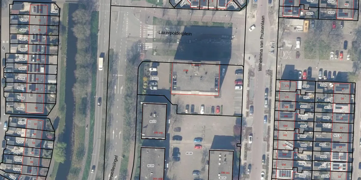 Het perceel waarop Lakerpolderplein 52 staat heeft een oppervlakte van 1450 m². Dit is een zeer groot perceel. De perceeloppervlakte wordt geregistreerd door het Kadaster. Gedetailleerde informatie over de maten van dit perceel kunt u vinden in het rapport Kadastrale kaart met maatvoering van Lakerpolderplein 52.