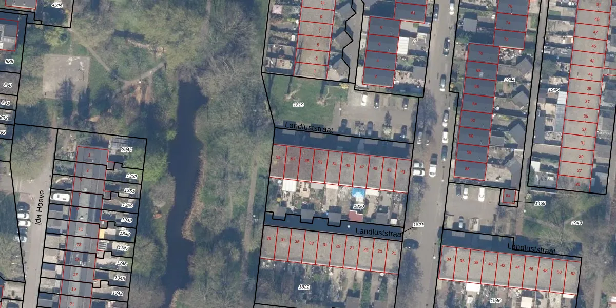 Landluststraat 55 is gelegen op kadastraal perceel GDA01M1820. Deze kadastrale aanduiding is uniek en wordt gebruikt door het Kadaster om eigendomsrechten en andere zakelijke rechten vast te leggen. Het perceel maakt onderdeel uit van de kadastrale gemeente Gouda.