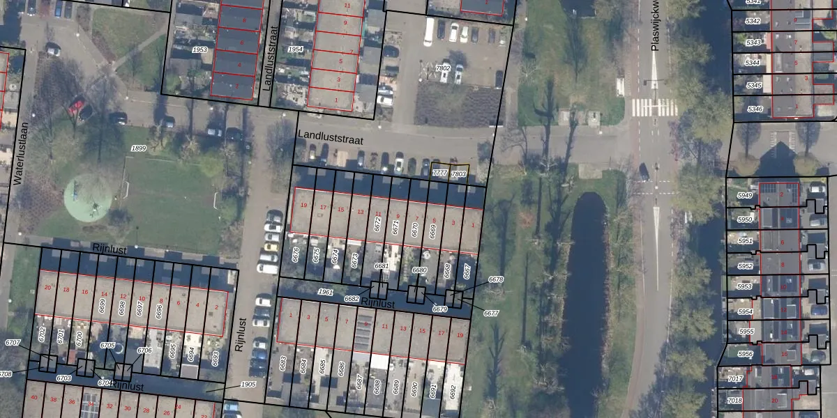 Landluststraat 7 is gelegen op kadastraal perceel GDA01M6670. Deze kadastrale aanduiding is uniek en wordt gebruikt door het Kadaster om eigendomsrechten en andere zakelijke rechten vast te leggen. Het perceel maakt onderdeel uit van de kadastrale gemeente Gouda.
