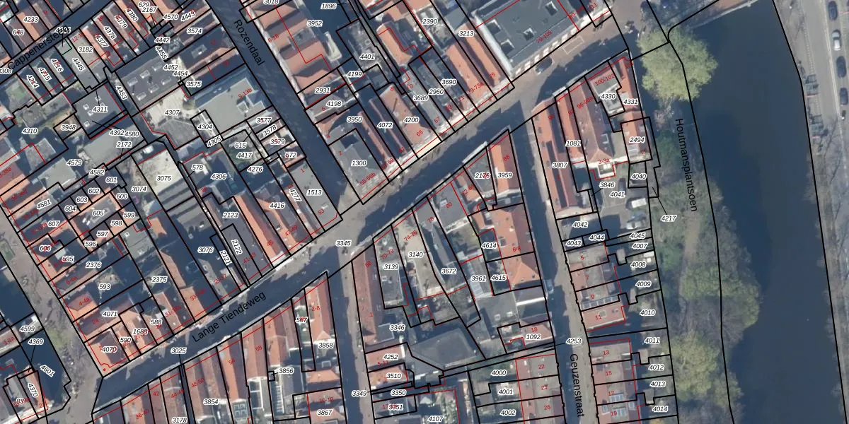 Gebruik de zoekbalk of klik op een perceel voor informatie over de adressen binnen dit perceel.