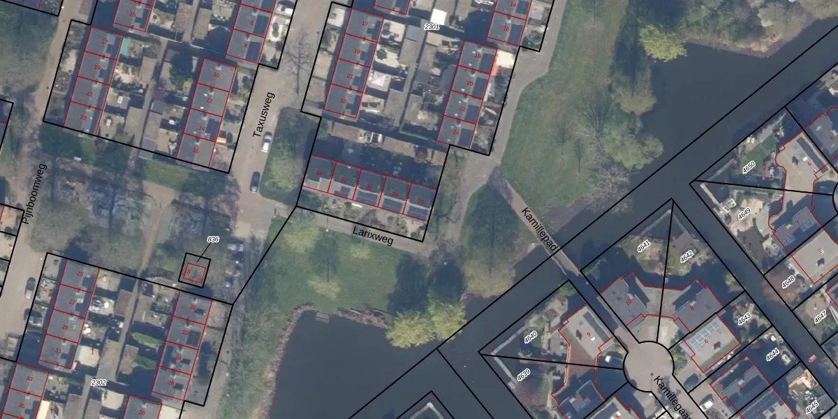 Het perceel waarop Larixweg 26 staat heeft een oppervlakte van 4407 m². Dit is een zeer groot perceel. De perceeloppervlakte wordt geregistreerd door het Kadaster. Gedetailleerde informatie over de maten van dit perceel kunt u vinden in het rapport Kadastrale kaart met maatvoering van Larixweg 26.