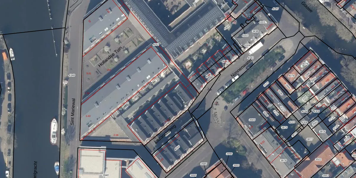 Het perceel waarop Lazarussteeg 19 staat heeft een oppervlakte van 6310 m². Dit is een zeer groot perceel. De perceeloppervlakte wordt geregistreerd door het Kadaster. Gedetailleerde informatie over de maten van dit perceel kunt u vinden in het rapport Kadastrale kaart met maatvoering van Lazarussteeg 19.