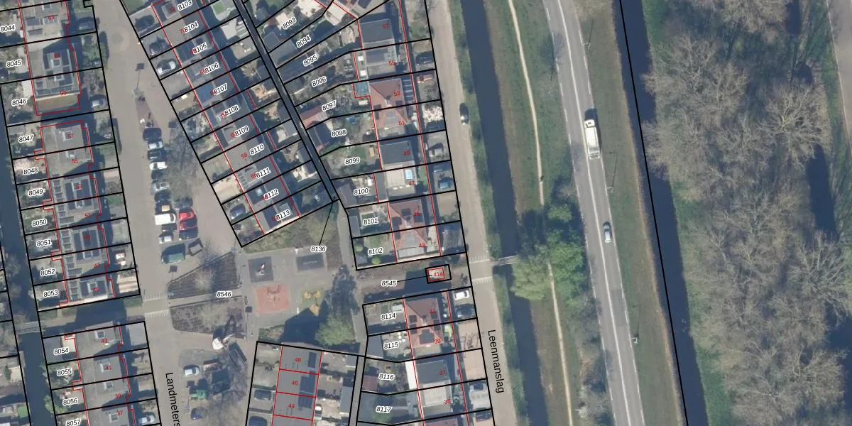 Leenmanslag 45 is gelegen op kadastraal perceel GDA01K8101. Deze kadastrale aanduiding is uniek en wordt gebruikt door het Kadaster om eigendomsrechten en andere zakelijke rechten vast te leggen. Het perceel maakt onderdeel uit van de kadastrale gemeente Gouda.