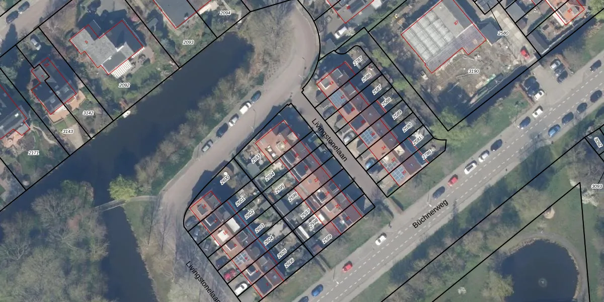 Gebruik de zoekbalk of klik op een perceel voor informatie over de adressen binnen dit perceel.