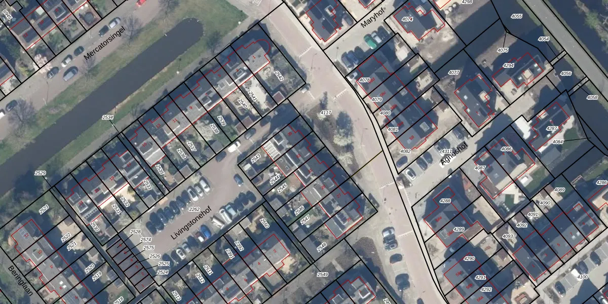 Gebruik de zoekbalk of klik op een perceel voor informatie over de adressen binnen dit perceel.