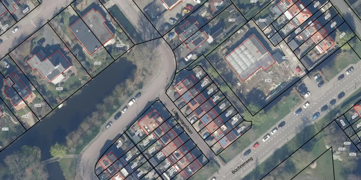 Gebruik de zoekbalk of klik op een perceel voor informatie over de adressen binnen dit perceel.