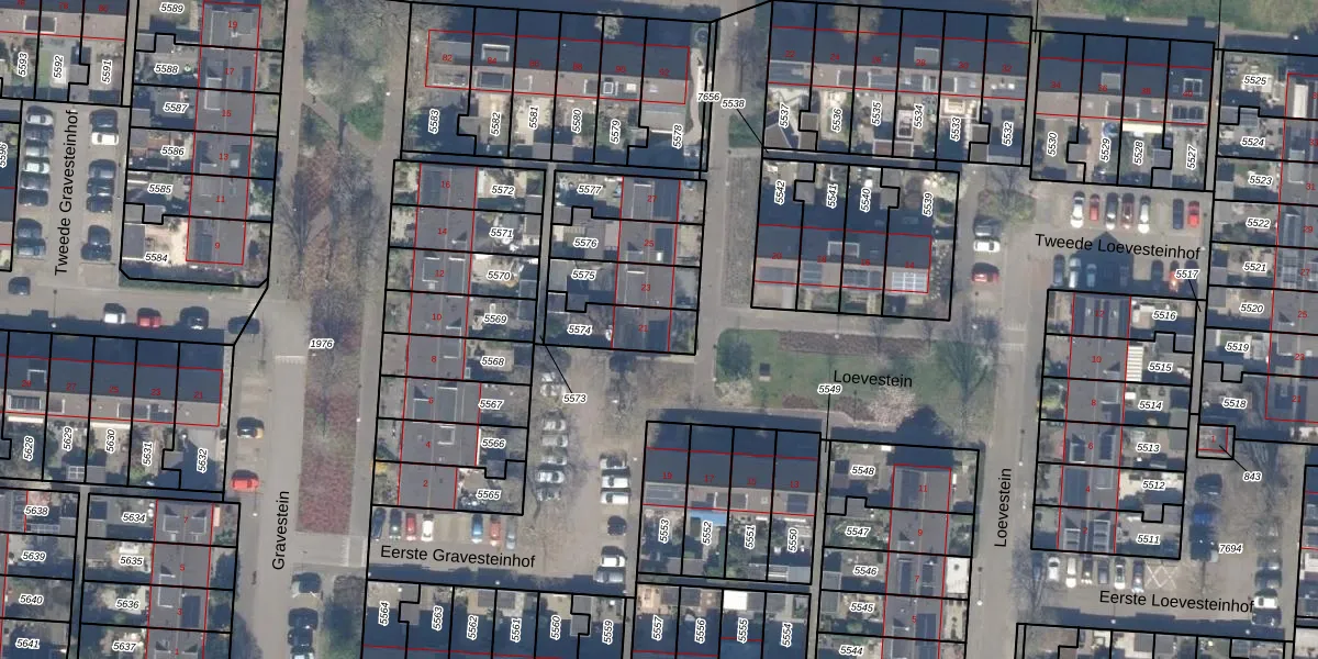 Het perceel waarop Loevestein 21 staat heeft een oppervlakte van 155 m². Dit is een middelgroot perceel. De perceeloppervlakte wordt geregistreerd door het Kadaster. Gedetailleerde informatie over de maten van dit perceel kunt u vinden in het rapport Kadastrale kaart met maatvoering van Loevestein 21.