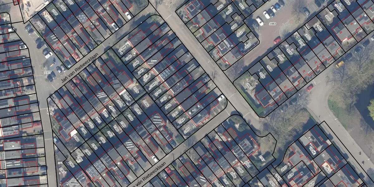 Gebruik de zoekbalk of klik op een perceel voor informatie over de adressen binnen dit perceel.