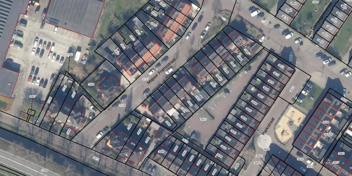 Gebruik de zoekbalk of klik op een perceel voor informatie over de adressen binnen dit perceel.