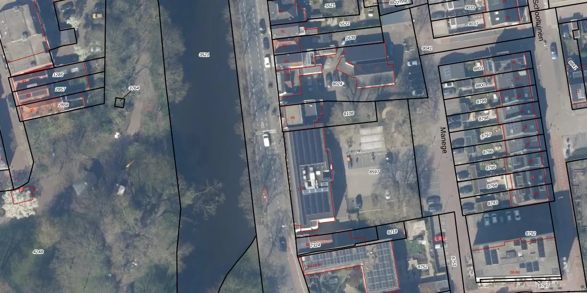 Het perceel waarop Manege 29 staat heeft een oppervlakte van 1633 m². Dit is een zeer groot perceel. De perceeloppervlakte wordt geregistreerd door het Kadaster. Gedetailleerde informatie over de maten van dit perceel kunt u vinden in het rapport Kadastrale kaart met maatvoering van Manege 29.