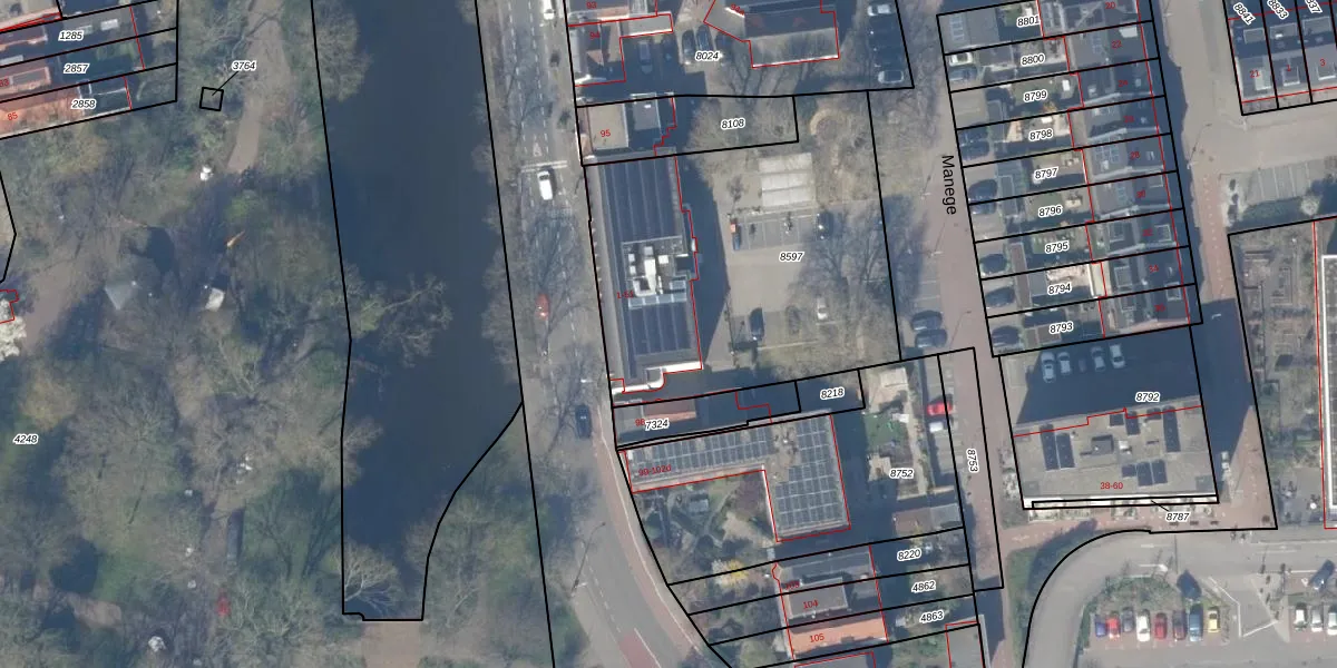 Manege 37 is gelegen op kadastraal perceel GDA01A8597. Deze kadastrale aanduiding is uniek en wordt gebruikt door het Kadaster om eigendomsrechten en andere zakelijke rechten vast te leggen. Het perceel maakt onderdeel uit van de kadastrale gemeente Gouda.