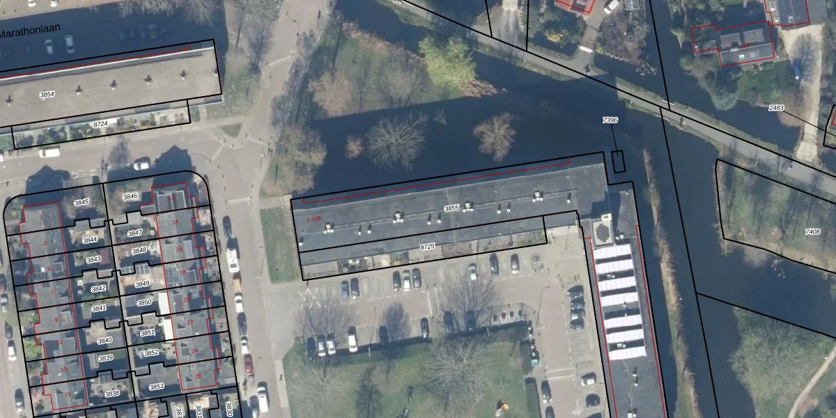 Marathonlaan 111 is gelegen op kadastraal perceel GDA01K3855. Deze kadastrale aanduiding is uniek en wordt gebruikt door het Kadaster om eigendomsrechten en andere zakelijke rechten vast te leggen. Het perceel maakt onderdeel uit van de kadastrale gemeente Gouda.
