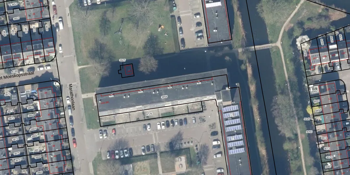 Marathonlaan 153 is gelegen op kadastraal perceel GDA01K3856. Deze kadastrale aanduiding is uniek en wordt gebruikt door het Kadaster om eigendomsrechten en andere zakelijke rechten vast te leggen. Het perceel maakt onderdeel uit van de kadastrale gemeente Gouda.