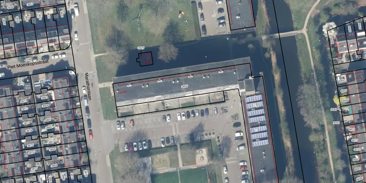 Marathonlaan 195 is gelegen op kadastraal perceel GDA01K3856. Deze kadastrale aanduiding is uniek en wordt gebruikt door het Kadaster om eigendomsrechten en andere zakelijke rechten vast te leggen. Het perceel maakt onderdeel uit van de kadastrale gemeente Gouda.