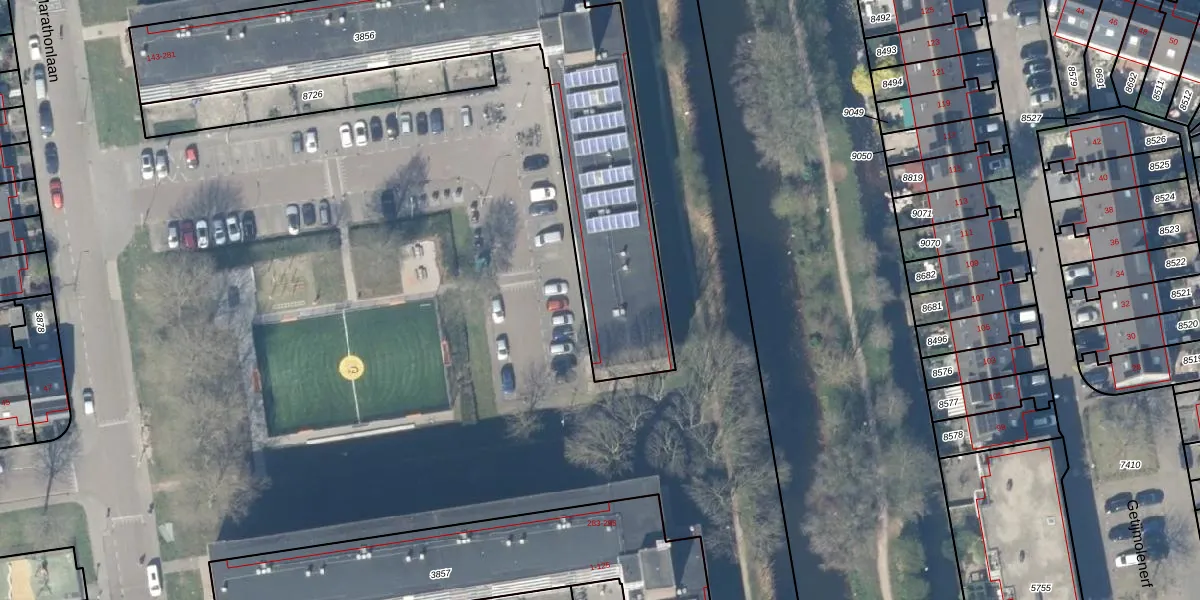 Marathonlaan 279 is gelegen op kadastraal perceel GDA01K3856. Deze kadastrale aanduiding is uniek en wordt gebruikt door het Kadaster om eigendomsrechten en andere zakelijke rechten vast te leggen. Het perceel maakt onderdeel uit van de kadastrale gemeente Gouda.