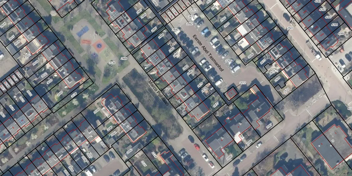 Marco Pololaan 8 is gelegen op kadastraal perceel GDA01H2480. Deze kadastrale aanduiding is uniek en wordt gebruikt door het Kadaster om eigendomsrechten en andere zakelijke rechten vast te leggen. Het perceel maakt onderdeel uit van de kadastrale gemeente Gouda.