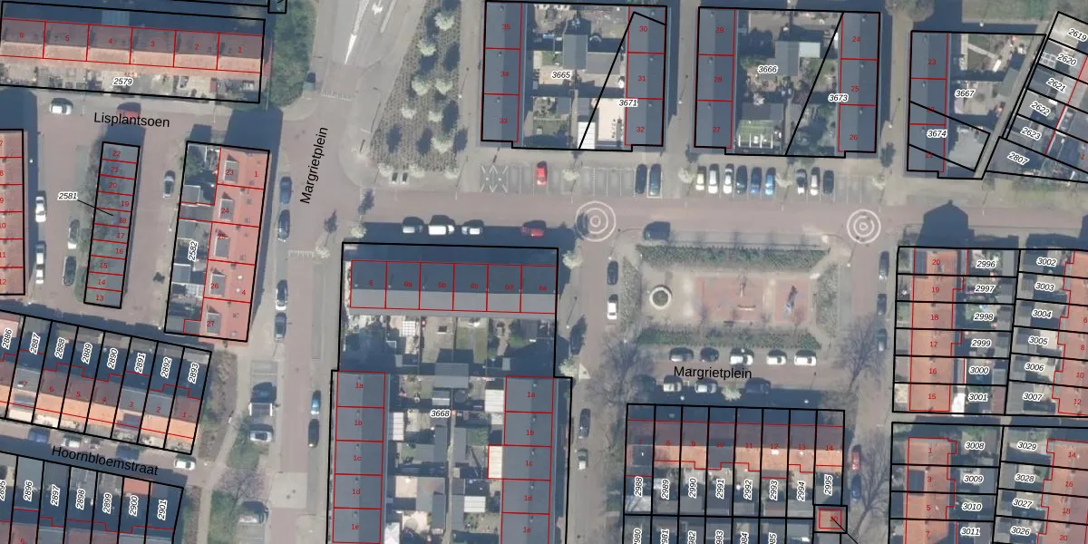Het perceel waarop Margrietplein 6-e staat heeft een oppervlakte van 2405 m². Dit is een zeer groot perceel. De perceeloppervlakte wordt geregistreerd door het Kadaster. Gedetailleerde informatie over de maten van dit perceel kunt u vinden in het rapport Kadastrale kaart met maatvoering van Margrietplein 6-e.