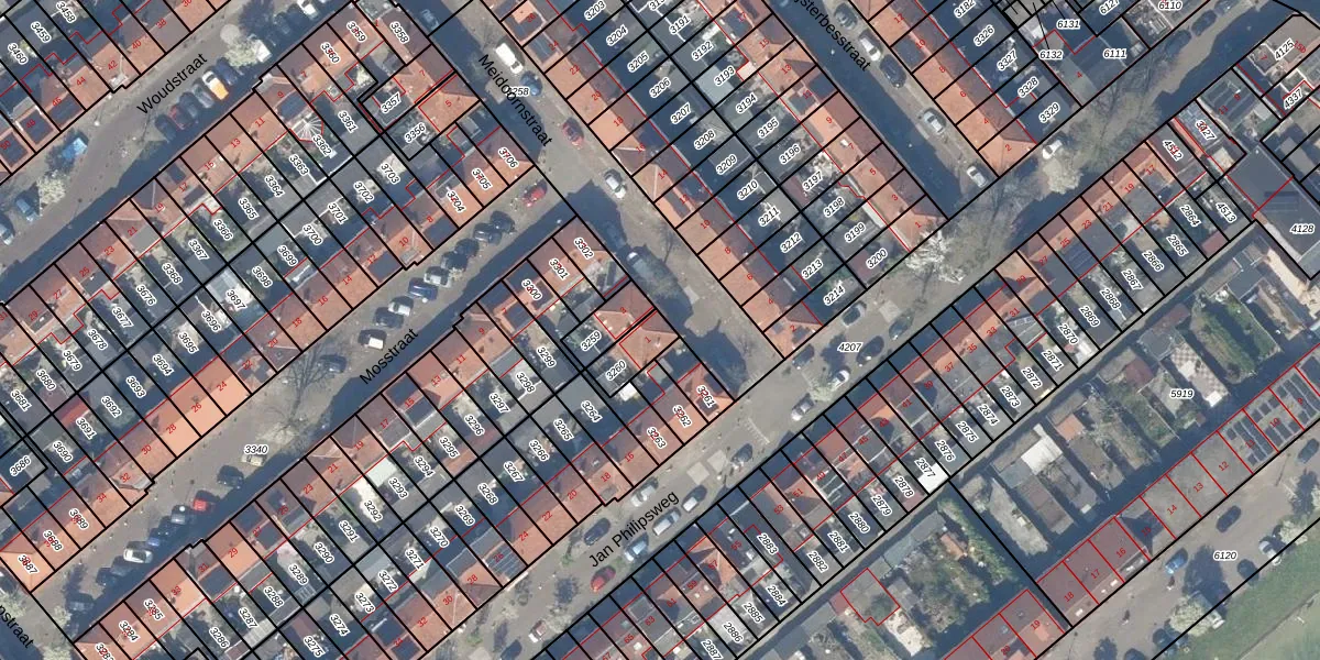 Gebruik de zoekbalk of klik op een perceel voor informatie over de adressen binnen dit perceel.