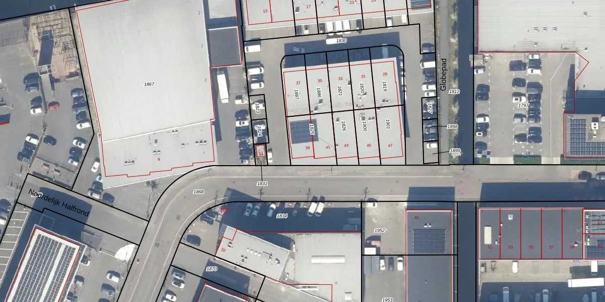 Meridiaan 39 is gelegen op kadastraal perceel GDA01G1825. Deze kadastrale aanduiding is uniek en wordt gebruikt door het Kadaster om eigendomsrechten en andere zakelijke rechten vast te leggen. Het perceel maakt onderdeel uit van de kadastrale gemeente Gouda.