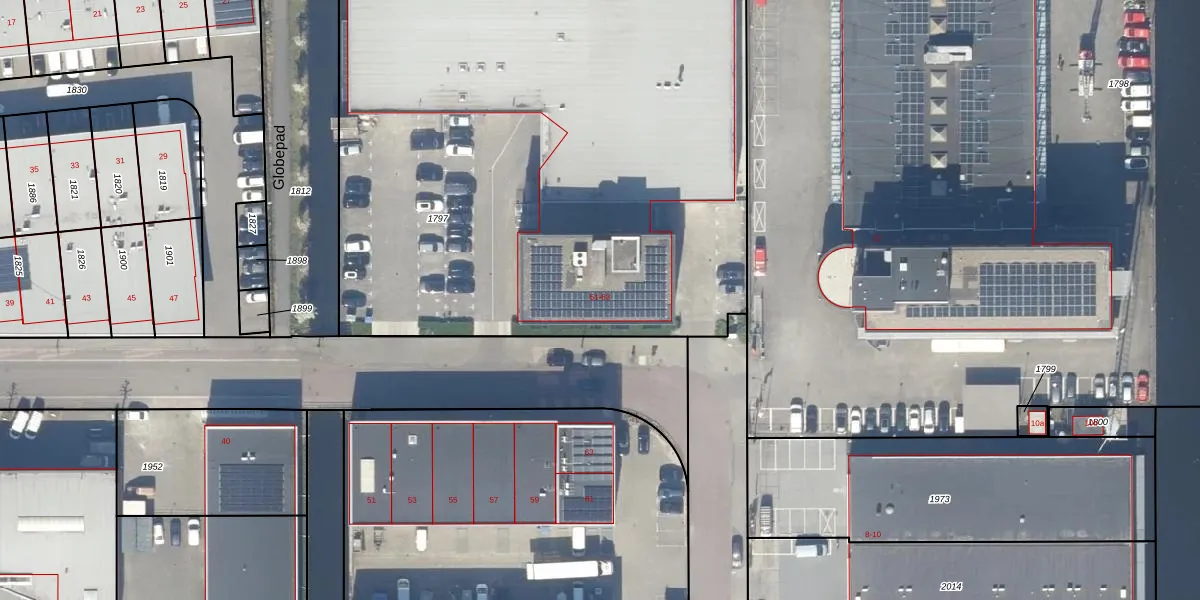 Het perceel waarop Meridiaan 59 staat heeft een oppervlakte van 4940 m². Dit is een zeer groot perceel. De perceeloppervlakte wordt geregistreerd door het Kadaster. Gedetailleerde informatie over de maten van dit perceel kunt u vinden in het rapport Kadastrale kaart met maatvoering van Meridiaan 59.