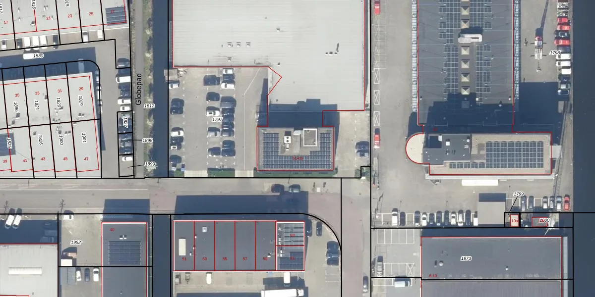 Het perceel waarop Meridiaan 63 staat heeft een oppervlakte van 4940 m². Dit is een zeer groot perceel. De perceeloppervlakte wordt geregistreerd door het Kadaster. Gedetailleerde informatie over de maten van dit perceel kunt u vinden in het rapport Kadastrale kaart met maatvoering van Meridiaan 63.