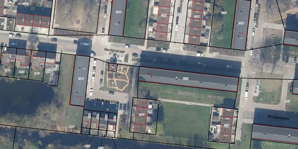 Merlijnstraat 24 is gelegen op kadastraal perceel GDA01K7261. Deze kadastrale aanduiding is uniek en wordt gebruikt door het Kadaster om eigendomsrechten en andere zakelijke rechten vast te leggen. Het perceel maakt onderdeel uit van de kadastrale gemeente Gouda.