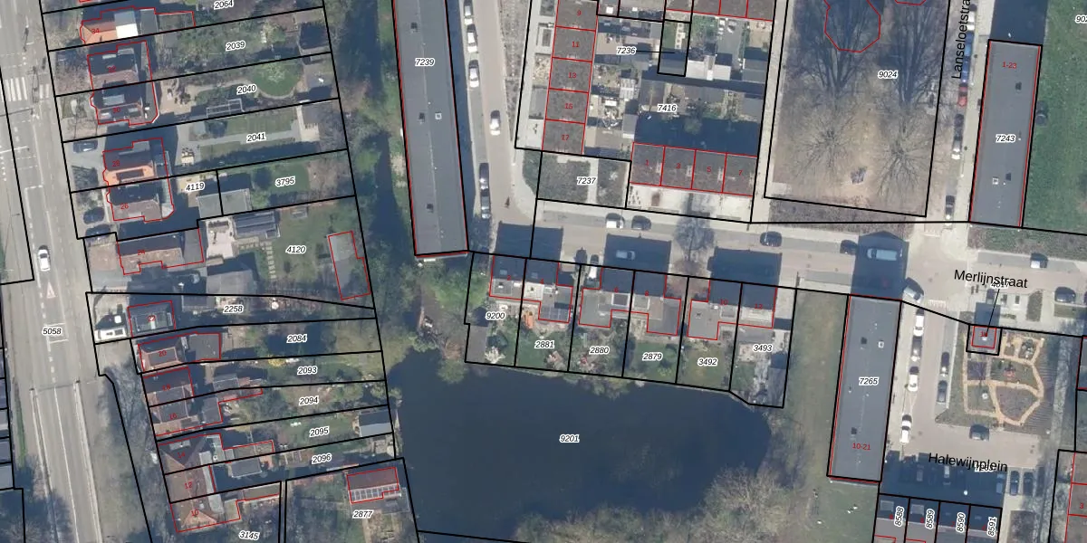 Gebruik de zoekbalk of klik op een perceel voor informatie over de adressen binnen dit perceel.