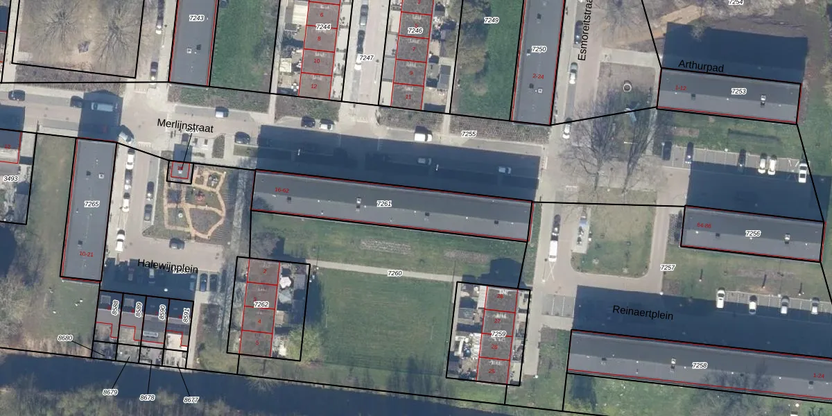 Het perceel waarop Merlijnstraat 48 staat heeft een oppervlakte van 664 m². Dit is een groot perceel. De perceeloppervlakte wordt geregistreerd door het Kadaster. Gedetailleerde informatie over de maten van dit perceel kunt u vinden in het rapport Kadastrale kaart met maatvoering van Merlijnstraat 48.