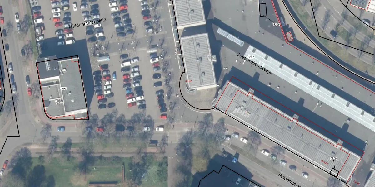 Het perceel waarop Middenmolenplein 2-b staat heeft een oppervlakte van 9511 m². Dit is een zeer groot perceel. De perceeloppervlakte wordt geregistreerd door het Kadaster. Gedetailleerde informatie over de maten van dit perceel kunt u vinden in het rapport Kadastrale kaart met maatvoering van Middenmolenplein 2-b.