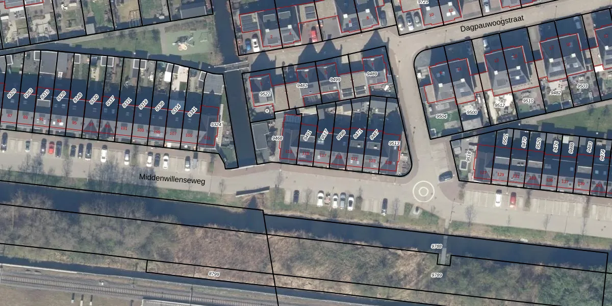 Middenwillenseweg 115 is gelegen op kadastraal perceel GDA01K9491. Deze kadastrale aanduiding is uniek en wordt gebruikt door het Kadaster om eigendomsrechten en andere zakelijke rechten vast te leggen. Het perceel maakt onderdeel uit van de kadastrale gemeente Gouda.