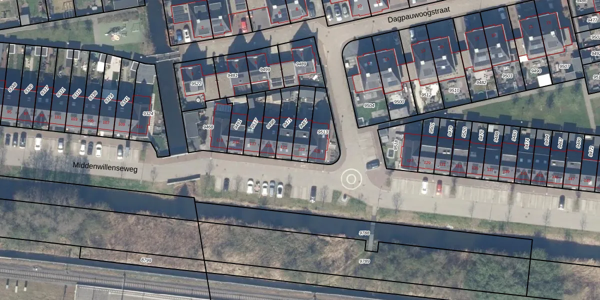 Middenwillenseweg 123 is gelegen op kadastraal perceel GDA01K9487. Deze kadastrale aanduiding is uniek en wordt gebruikt door het Kadaster om eigendomsrechten en andere zakelijke rechten vast te leggen. Het perceel maakt onderdeel uit van de kadastrale gemeente Gouda.