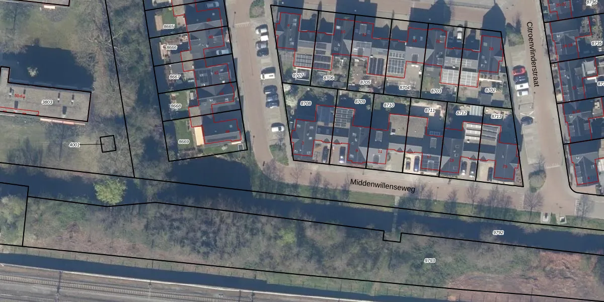 Middenwillenseweg 3 is gelegen op kadastraal perceel GDA01K8708. Deze kadastrale aanduiding is uniek en wordt gebruikt door het Kadaster om eigendomsrechten en andere zakelijke rechten vast te leggen. Het perceel maakt onderdeel uit van de kadastrale gemeente Gouda.