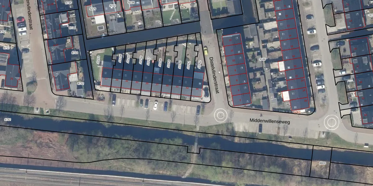 Middenwillenseweg 43 is gelegen op kadastraal perceel GDA01K10261. Deze kadastrale aanduiding is uniek en wordt gebruikt door het Kadaster om eigendomsrechten en andere zakelijke rechten vast te leggen. Het perceel maakt onderdeel uit van de kadastrale gemeente Gouda.