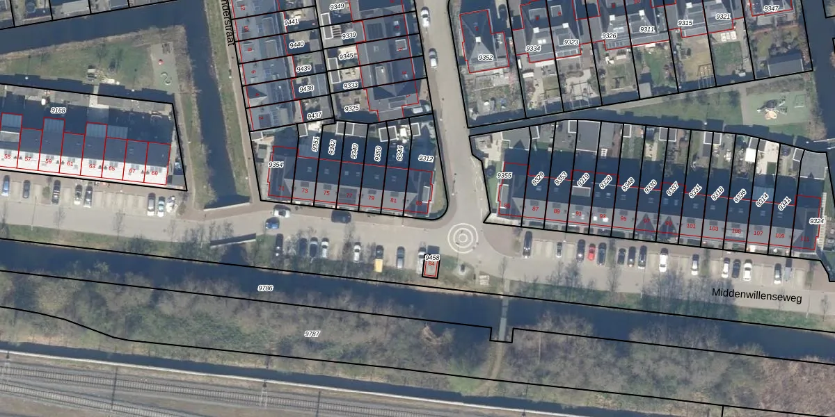 Middenwillenseweg 83 is gelegen op kadastraal perceel GDA01K9312. Deze kadastrale aanduiding is uniek en wordt gebruikt door het Kadaster om eigendomsrechten en andere zakelijke rechten vast te leggen. Het perceel maakt onderdeel uit van de kadastrale gemeente Gouda.