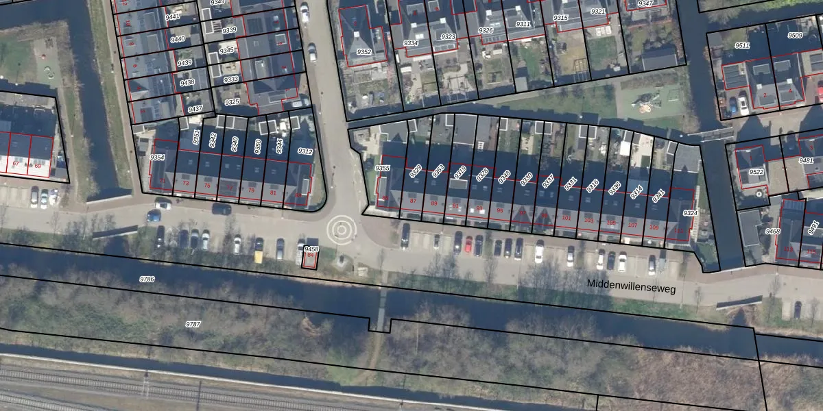 Middenwillenseweg 87 is gelegen op kadastraal perceel GDA01K9329. Deze kadastrale aanduiding is uniek en wordt gebruikt door het Kadaster om eigendomsrechten en andere zakelijke rechten vast te leggen. Het perceel maakt onderdeel uit van de kadastrale gemeente Gouda.