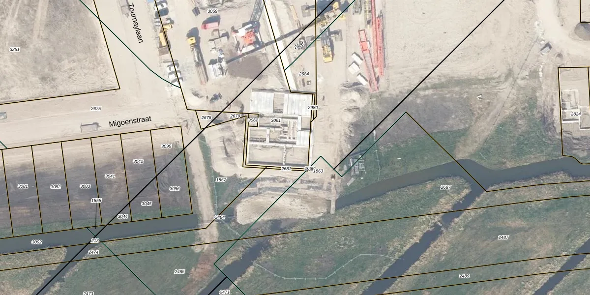 Het perceel waarop Migoenstraat 53 staat heeft een oppervlakte van 656 m². Dit is een groot perceel. De perceeloppervlakte wordt geregistreerd door het Kadaster. Gedetailleerde informatie over de maten van dit perceel kunt u vinden in het rapport Kadastrale kaart met maatvoering van Migoenstraat 53.