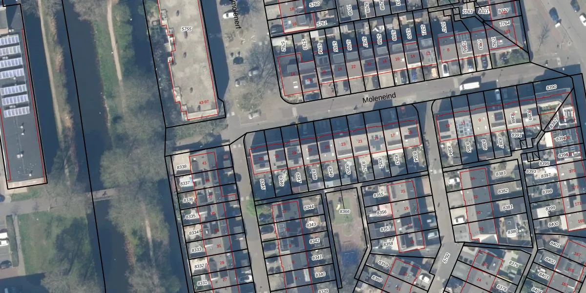 Gebruik de zoekbalk of klik op een perceel voor informatie over de adressen binnen dit perceel.