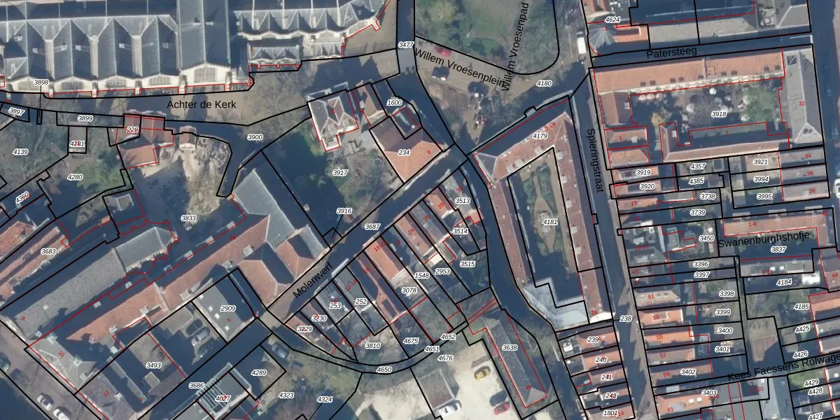Gebruik de zoekbalk of klik op een perceel voor informatie over de adressen binnen dit perceel.