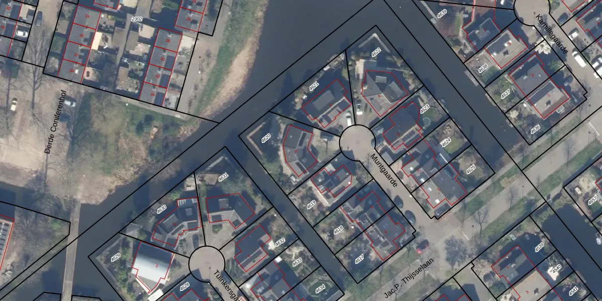 Gebruik de zoekbalk of klik op een perceel voor informatie over de adressen binnen dit perceel.