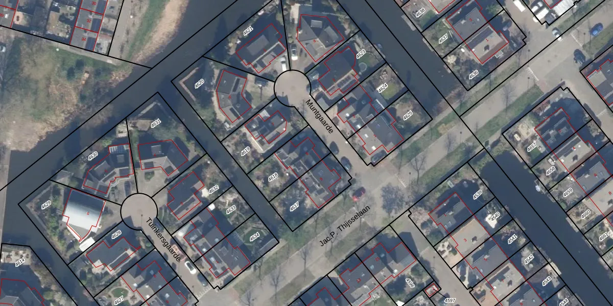 Het perceel waarop Muntgaarde 8 staat heeft een oppervlakte van 303 m². Dit is een groot perceel. De perceeloppervlakte wordt geregistreerd door het Kadaster. Gedetailleerde informatie over de maten van dit perceel kunt u vinden in het rapport Kadastrale kaart met maatvoering van Muntgaarde 8.