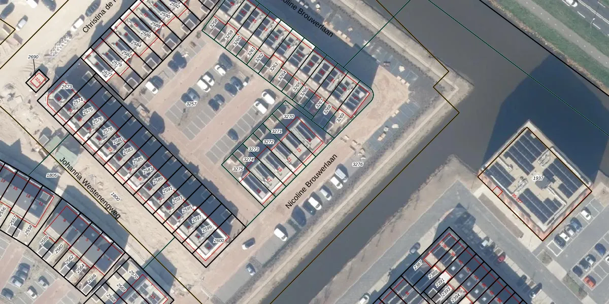 Gebruik de zoekbalk of klik op een perceel voor informatie over de adressen binnen dit perceel.