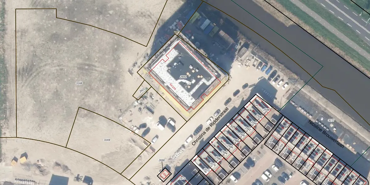 Het perceel waarop het adres ligt is GDA01-N-2691. De afkorting 'GDA01' staat voor kadastrale gemeente Gouda. De oppervlakte van het perceel is 1205 m². Dat is groter dan gemiddeld in Gouda, waar de gemiddelde perceeloppervlakte op 678,78 m² ligt. De grootste perceeloppervlakte in de kadastrale gemeente is 24,2 ha. De kleinste oppervlakte bedraagt 0 m². Op het perceel liggen in totaal 46 adressen. De huidige grenzen van het perceel zijn digitaal in de Basisregistratie Kadaster (BRK) geregistreerd op 29-11-2023.