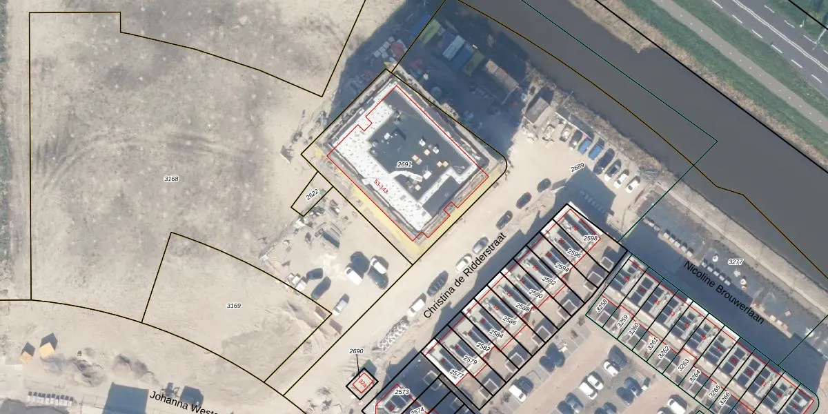 Het perceel waarop het adres ligt is GDA01-N-2691. De afkorting 'GDA01' staat voor kadastrale gemeente Gouda. De oppervlakte van het perceel is 1205 m². Dat is groter dan gemiddeld in Gouda, waar de gemiddelde perceeloppervlakte op 678,78 m² ligt. De grootste perceeloppervlakte in de kadastrale gemeente is 24,2 ha. De kleinste oppervlakte bedraagt 0 m². Er zijn 46 adressen aanwezig op het perceel. De laatste wijziging in het de Basisregistratie Kadaster (BRK) was op 29-11-2023.